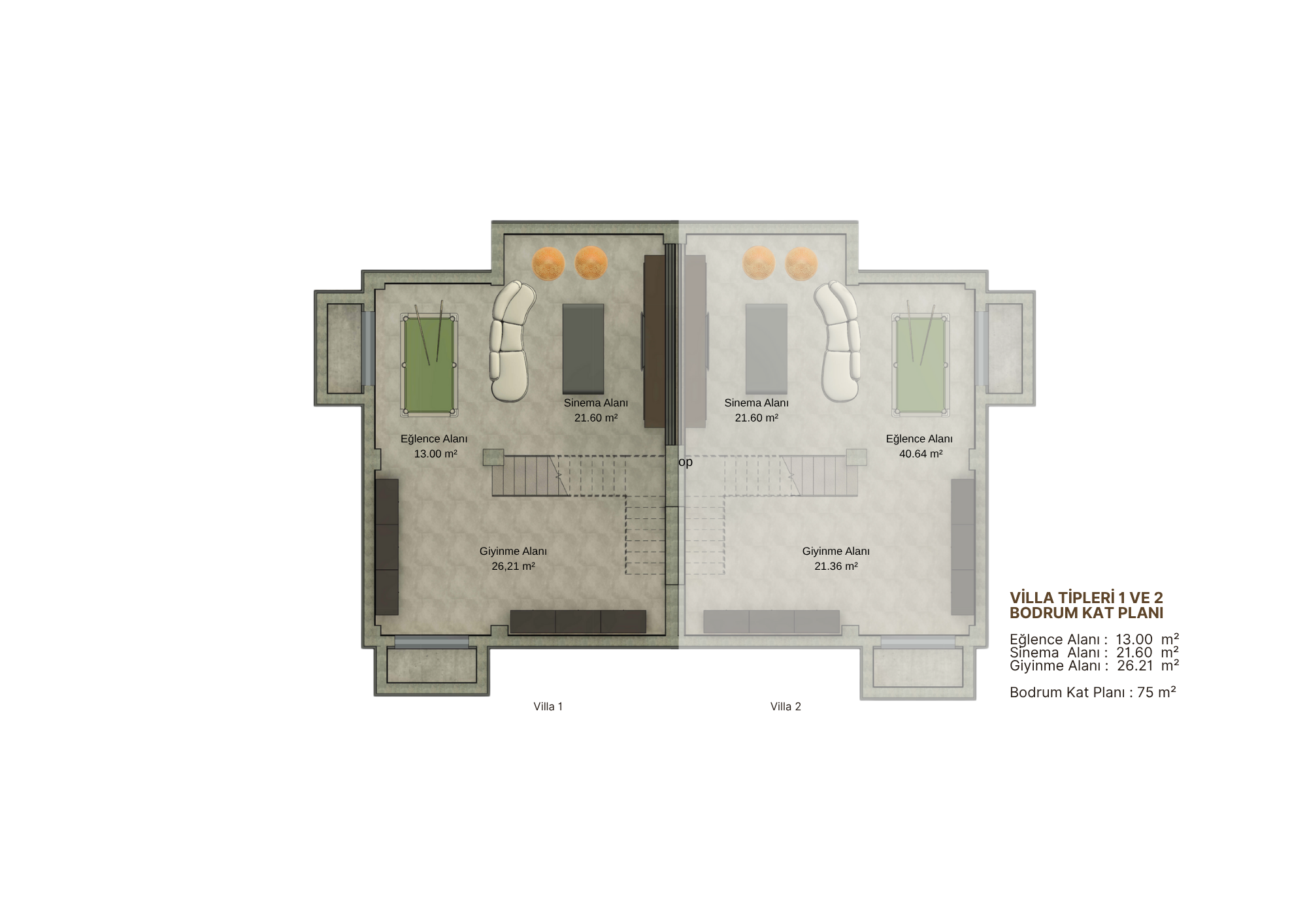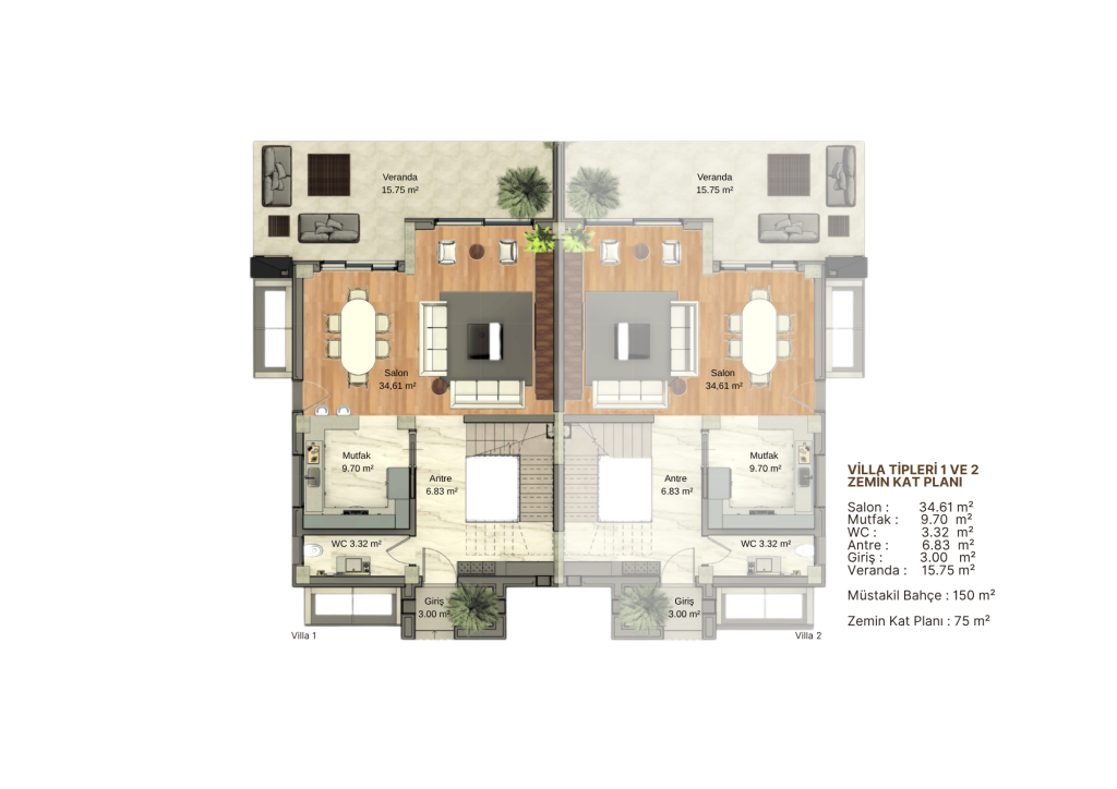 Villa Tipleri 1 ve 2 Zemin Kat Planları